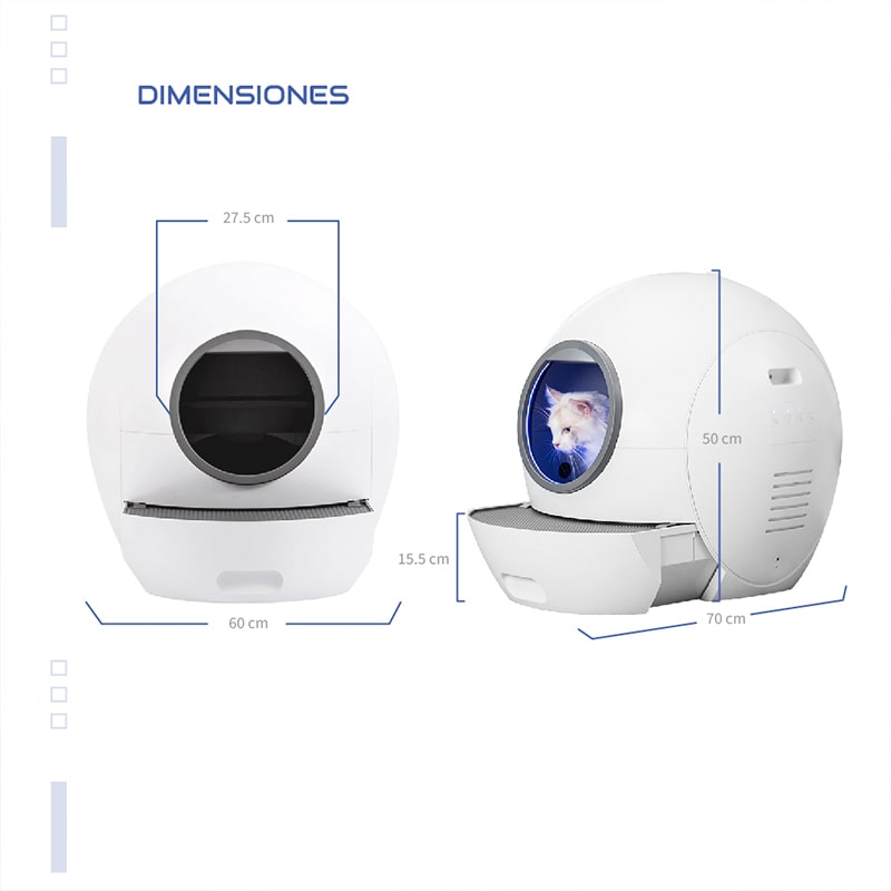 El Els Pet Arenero Automático para Gatos es la solución inteligente para mantener la higiene de tu hogar y la comodidad de tus felinos. Con una capacidad de 4 kilos de arena, este arenero puede ser utilizado por hasta 4 gatos de manera segura y práctica. Su sistema de autolimpieza puede activarse manualmente o a través de la app en tu celular, gracias a su conexión WiFi, lo que te permite mantener la bandeja siempre limpia sin esfuerzo. Su diseño moderno en blanco y negro se adapta perfectamente a cualquier espacio del hogar, brindando comodidad, control y bienestar tanto a dueños como a mascotas.