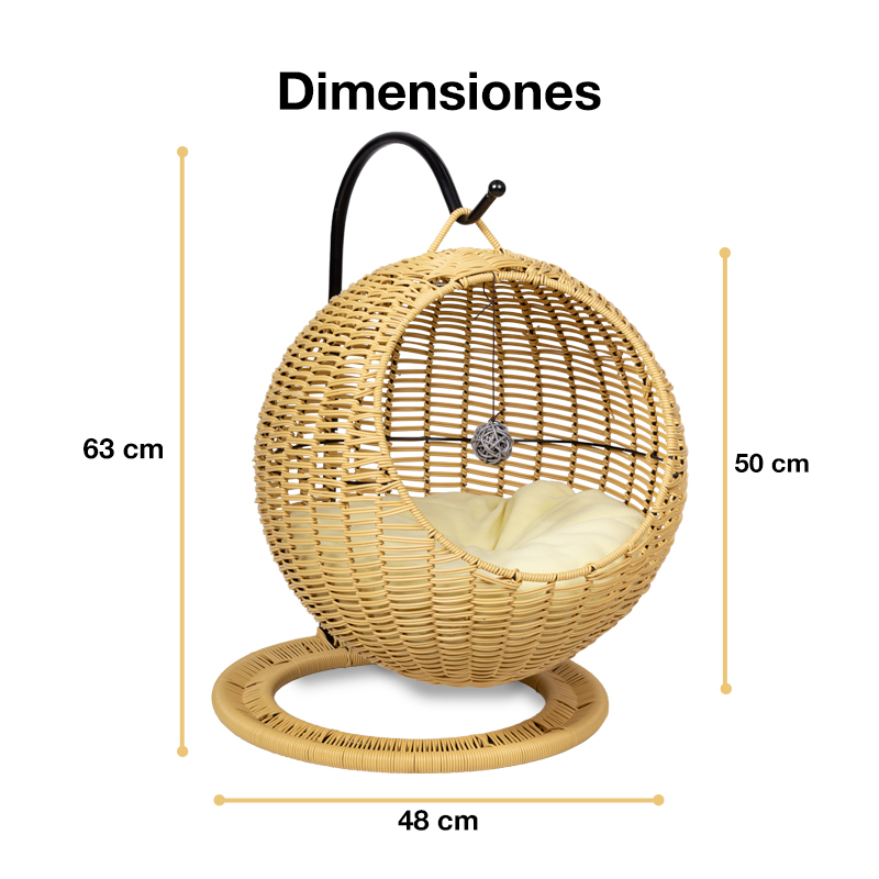 La Cama de Mimbre Colgante para Gatos es el accesorio perfecto para los felinos más curiosos y exigentes. Su diseño colgante simula el acabado natural del mimbre, ofreciendo un toque moderno, estético y elegante que se integra fácilmente en cualquier espacio del hogar. Disponible en tres colores (Natural, Negro y Marrón), esta cama brinda a tu gato un lugar elevado y seguro para descansar con estilo. Incluye un cojín suave y acolchado, garantizando máximo confort, mientras que su estructura ligera y resistente asegura estabilidad. Ideal para gatos que disfrutan observar su entorno y relajarse en altura.