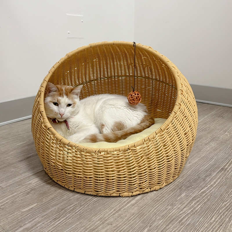 Cama de Mimbre para Gatos, cómoda y estética, disponible en Natural, Negro y Marrón.