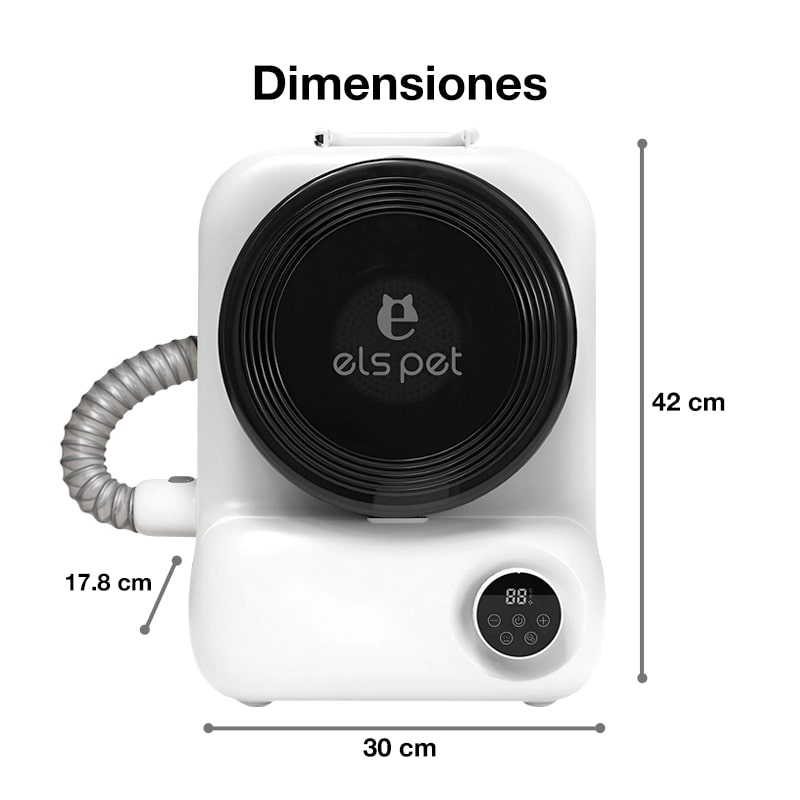 El Els Pet Kit de Aseo 5 en 1 para Mascotas en color blanco es la solución completa para mantener a tu perro o gato siempre limpio y cuidado desde casa. Este innovador dispositivo combina 5 herramientas en un solo lugar, permitiéndote cepillar, aspirar, cortar, peinar y secar de manera práctica y eficiente. Incorpora un sistema de secado rápido con rango de 86 °F a 158 °F, ideal para un acabado perfecto después del baño. Sus dos canales de aire proporcionan una distribución uniforme del calor, cuidando la piel y el pelaje de tu mascota. Además, cuenta con un depósito desmontable de 2,5L, fácil de lavar, que recoge el pelo y la suciedad para un aseo más higiénico y sin complicaciones.